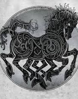- 奧丁有兩隻神鴉,胡金(Huginn,意為思想)和幕靈(Muninn,意為記憶);同時他還有兩隻獵犬,基利(Geri,意為貪欲)和弗雷奇(Freki,意為爆食),平時也有坐騎-斯萊普尼爾(Sleipnir,下圖),也是八足神駒