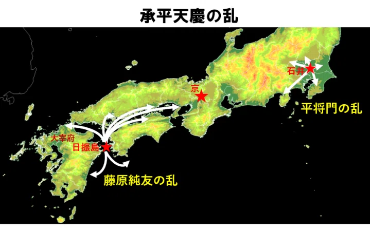 承平天慶之亂(939年) = 關東平將門之亂 + 瀨戶內海的藤原純友之亂