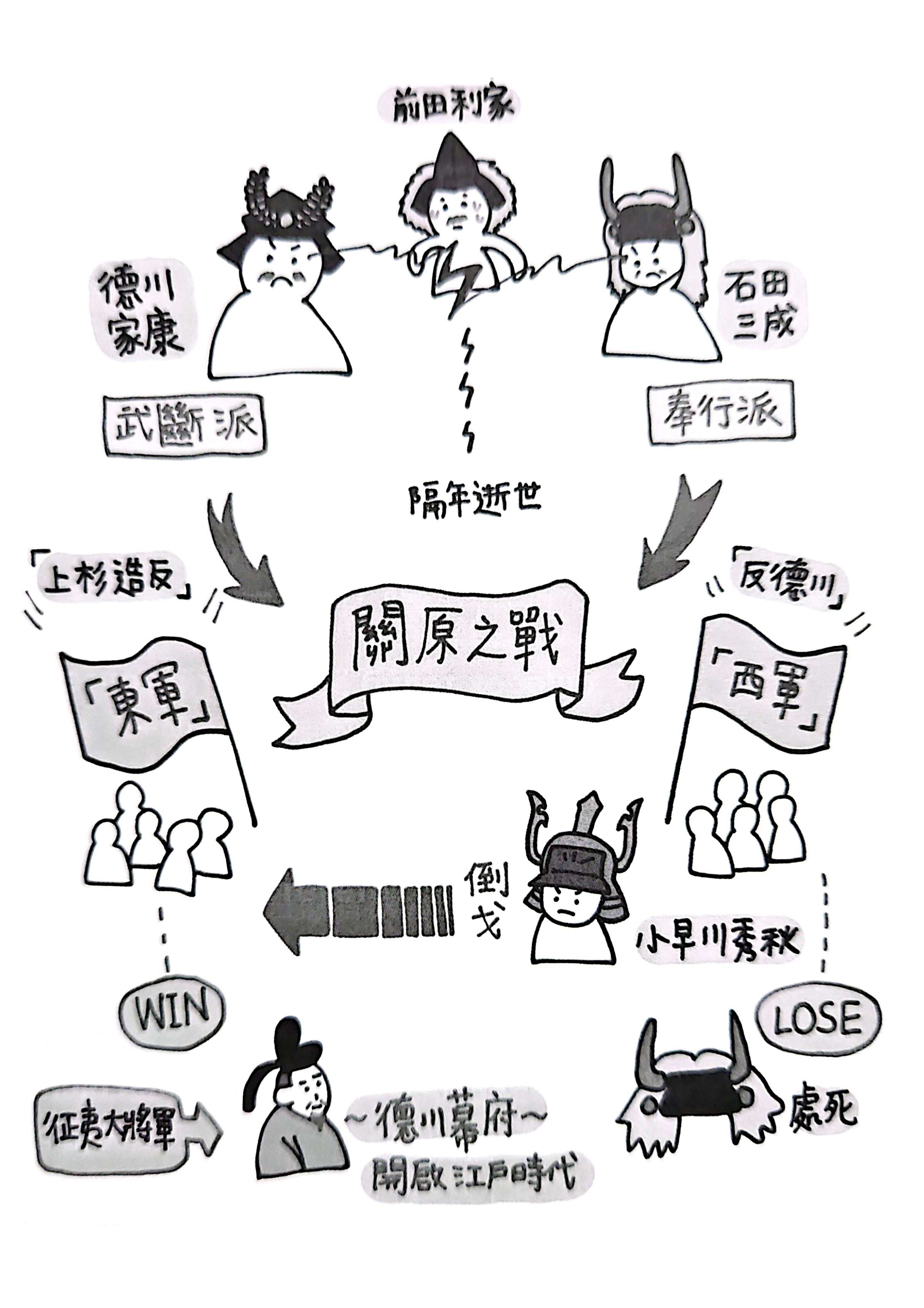 - 源賴朝 → 北條氏 → 足利尊氏 → 應仁之亂 → 戰國時代