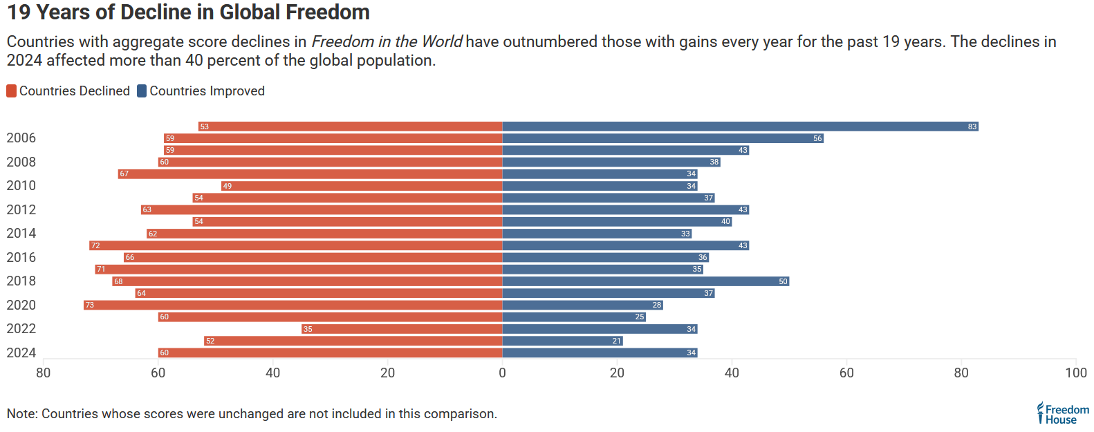 尤其是現在的民主化程度開倒車,很多國家都對這一套系統(目前指的是科技產品本身)有興趣,詳細可以看Freedom House - 2025對於各個國家自由程度開倒車的數量統計,最近三年式連年上升,尤其是各個國家的極右派崛起,各種極端言論以及AI衝擊之下,都對民主政體造成極大的傷害,有關於假訊息以及極右派之間的關係,可以參考劉致昕的⟪真相製造:從聖戰士媽媽、極權政府、網軍教練、境外勢力、打假部隊、內容農場主人到政府小編⟫,所以要說有其他先進民主國家也對這一套科技產品感興趣,我是一點都不意外