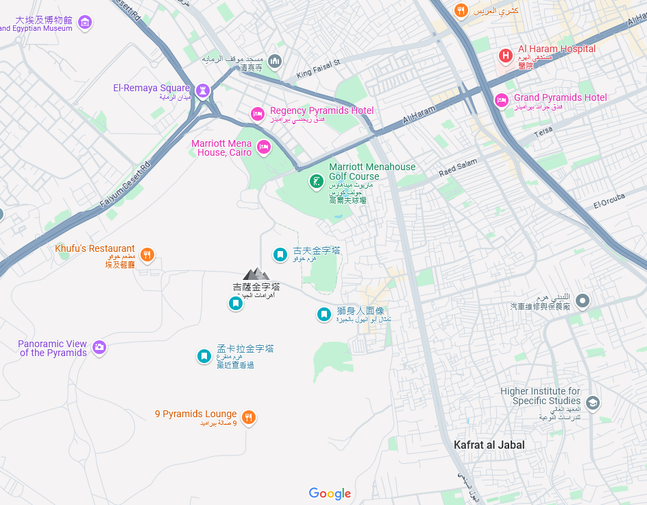 埃及開羅附近的吉薩(Giza)有世界上最大的三座金字塔,胡夫金字塔(2690 B.C.,通稱為大金字塔,Khufu)、哈夫拉金字塔(2650 B.C.,Khafre)以及門卡烏拉金字塔(2600 B.C.,Menkaure)