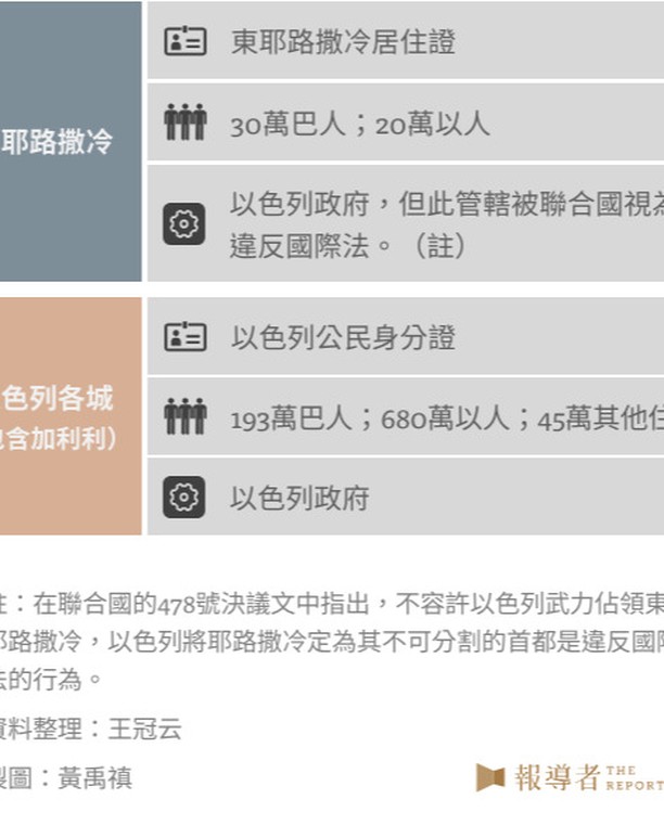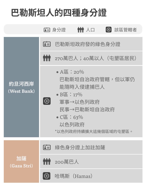 - 巴勒斯坦人的3種身份(約旦河西岸/加薩/東耶路撒冷):