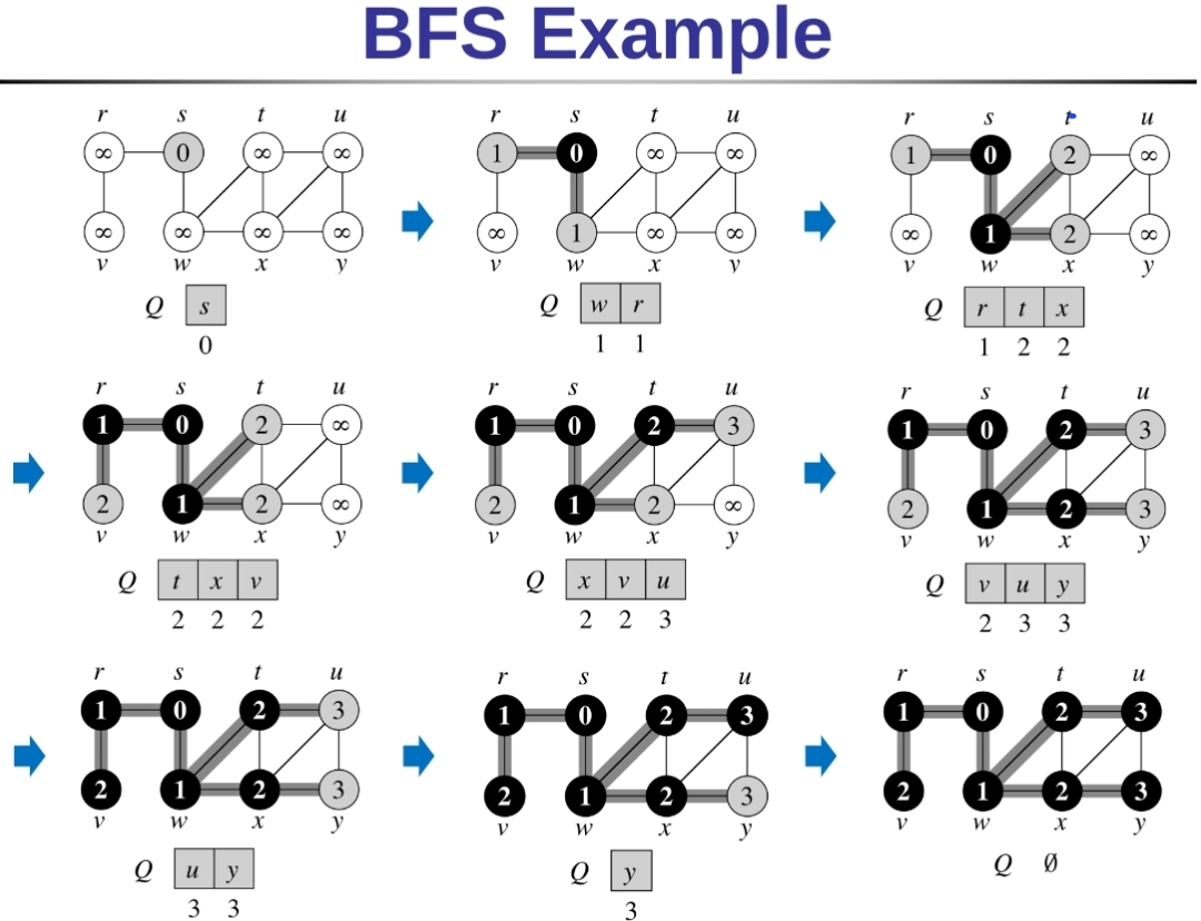 下面pseudo code的目的是給一個graph和起始的點s,計算出圖上各個點與s之間的距離