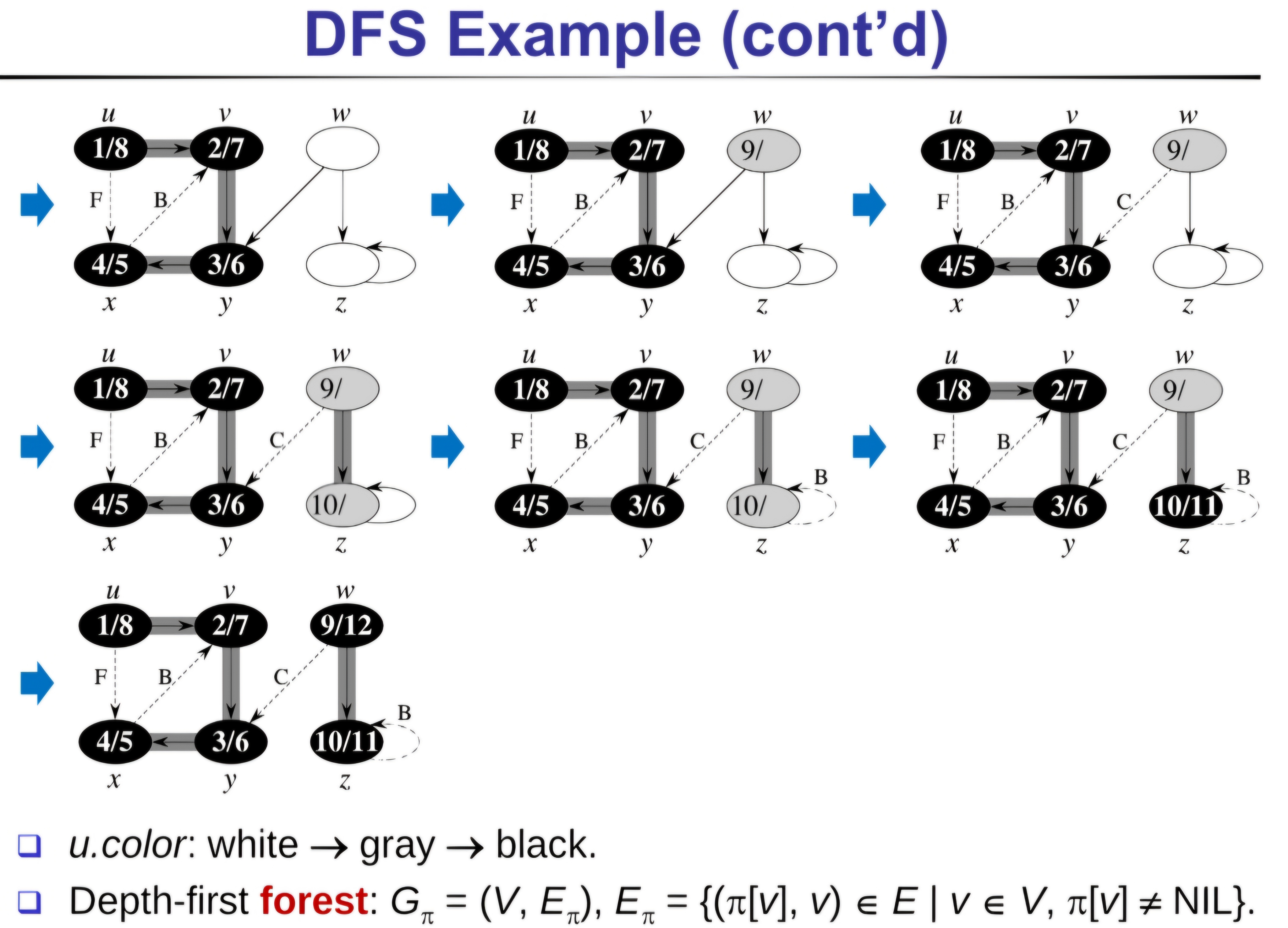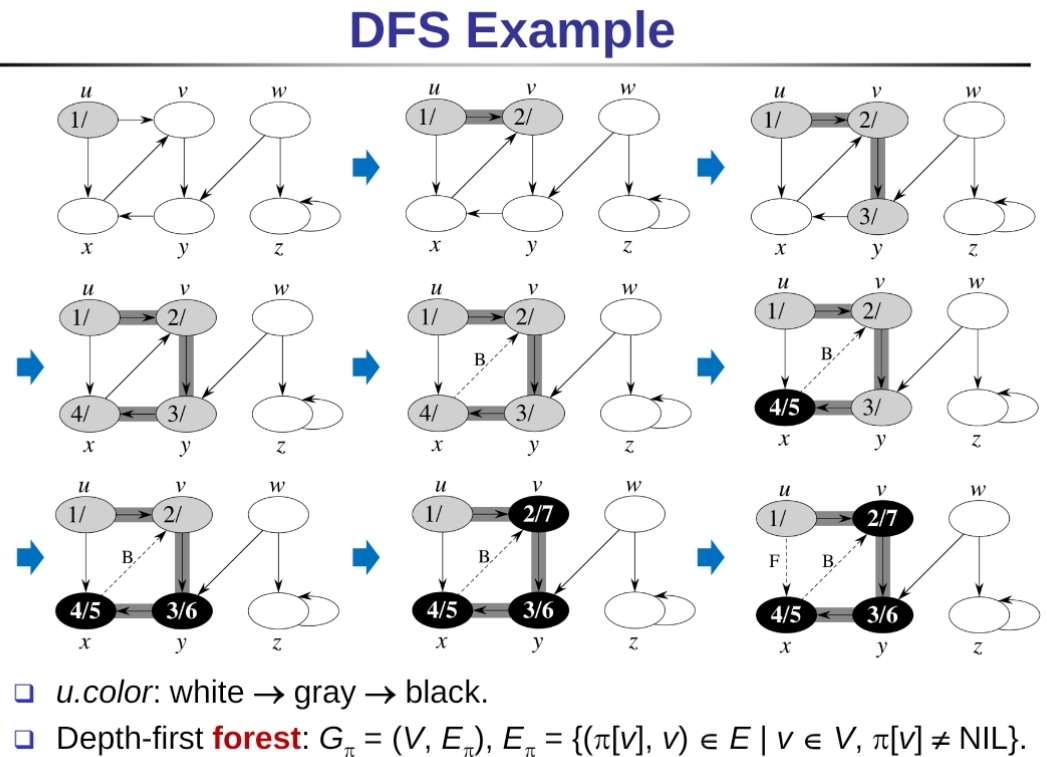 - u.color: 和BFS定義的一樣,分為WHITE, GRAY, BLACK