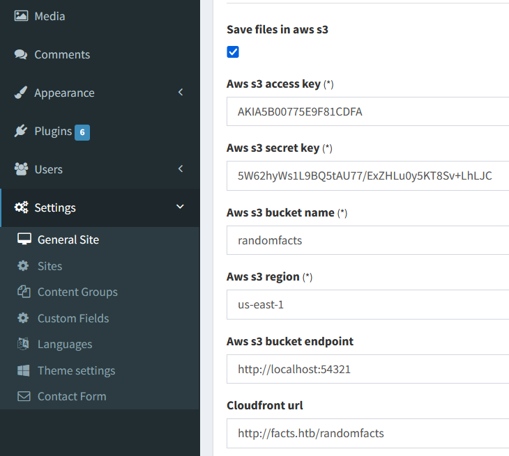 在後台(http://facts.htb/admin/settings/site)可以確認幾件事情