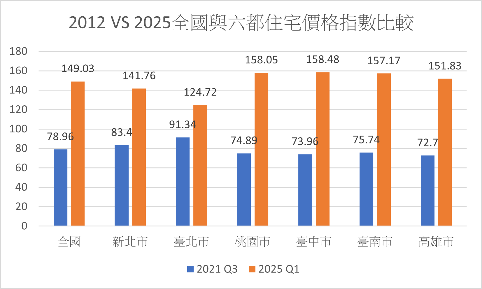 - 住宅價格指數呈現各個城市的漲幅非常驚人